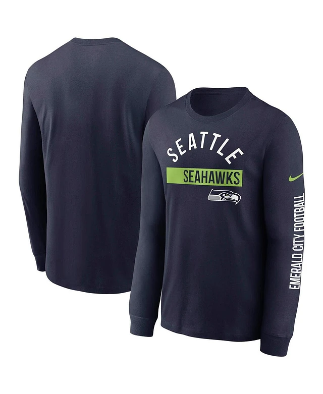 Men's Nike College Navy Seattle Seahawks Team Slogan Long Sleeve T-shirt