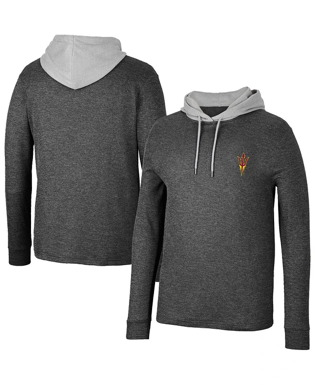 Men's Colosseum Black Arizona State Sun Devils Ballot Waffle-Knit Thermal Long Sleeve Hoodie T-shirt