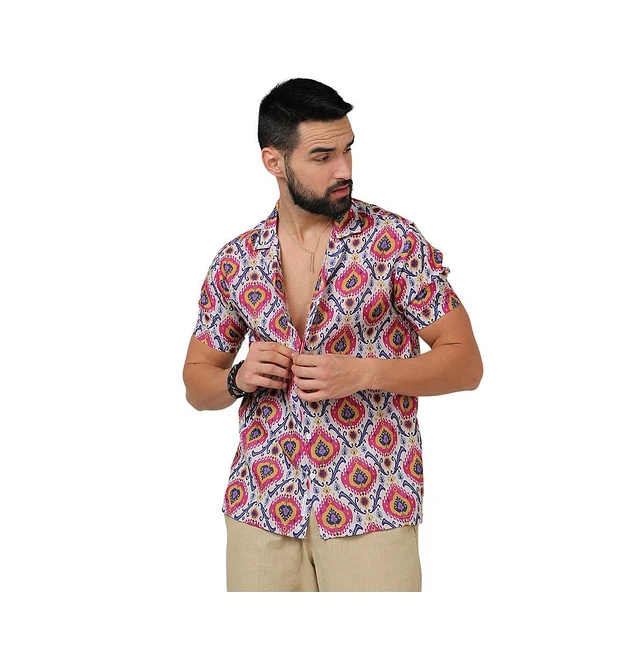 Campus Sutra Men's Vermillion Red & Ivory White Rose Shirt