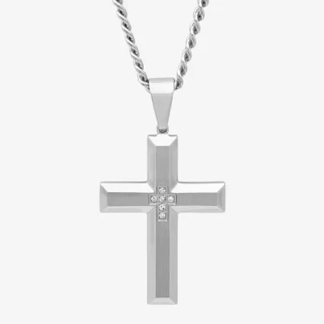 Mens Diamond-Accent Stainless Steel Cross Pendant Necklace