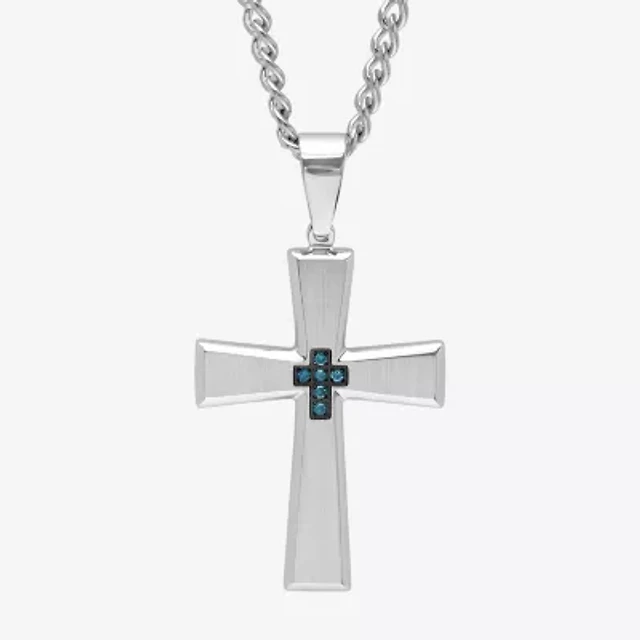 Mens Diamond-Accent Stainless Steel Cross Pendant Necklace