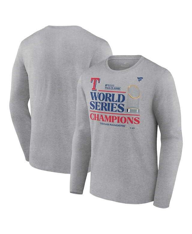 Men's Fanatics Heather Gray Texas Rangers 2023 World Series Champions Locker Room Long Sleeve T-shirt