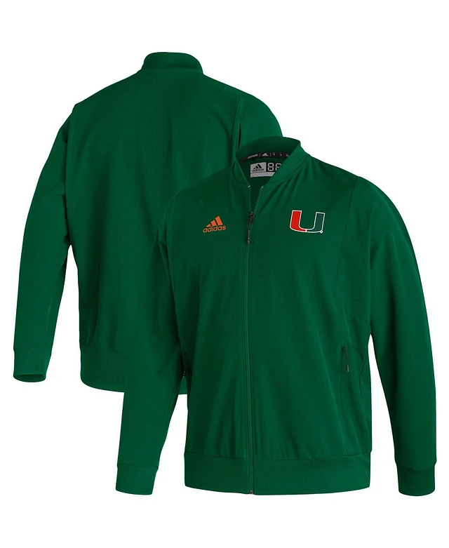 Men's Green Miami Hurricanes 2021 Sideline Woven Full-Zip Bomber Jacket