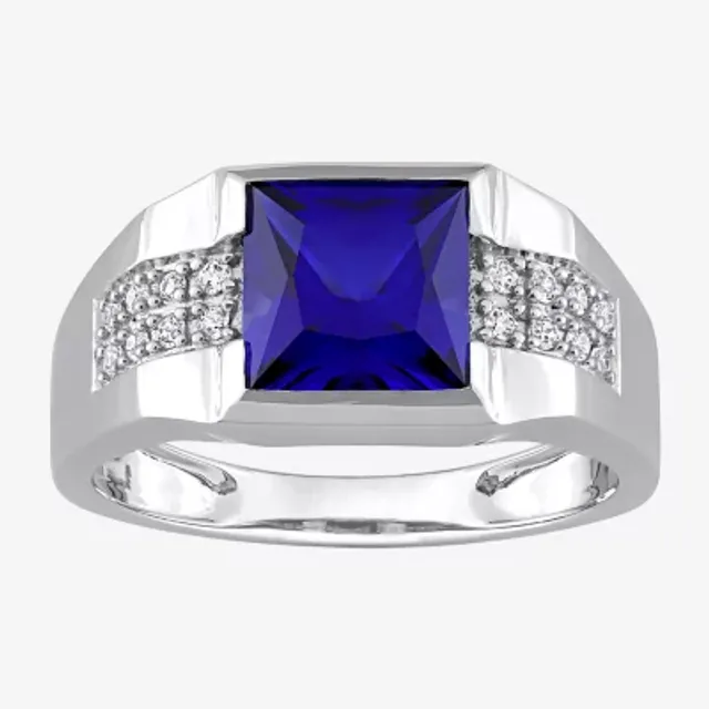 Mens Lab Created Blue Sapphire 10K White Gold Fashion Ring