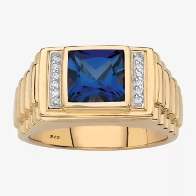 Mens Lab Created Blue Sapphire 18K Gold Over Silver Fashion Ring