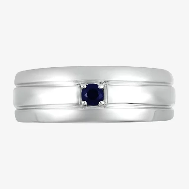 Mens Diamond Accent Lab Created Blue Sapphire Sterling Silver Fashion Ring