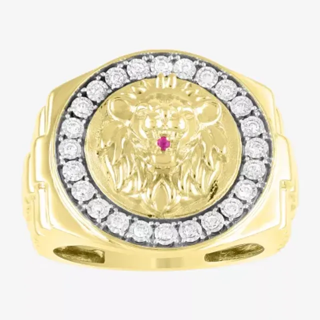 Mens Lion 1/4 CT. T.W. Genuine White Diamond 10K Gold Fashion Ring