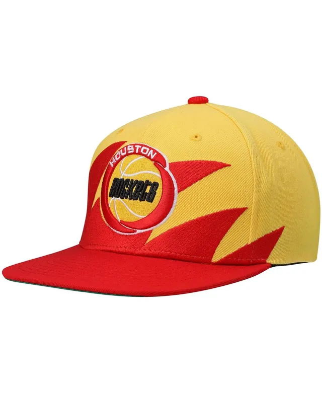 Men's Mitchell & Ness Gold and Red Houston Rockets Hardwood Classics Sharktooth Snapback Hat