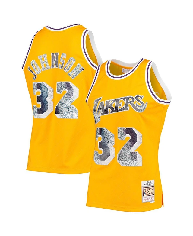 Men's Mitchell & Ness Magic Johnson Gold-Tone Los Angeles Lakers 1984-85 Hardwood Classics 75th Anniversary Diamond Swingman Jersey