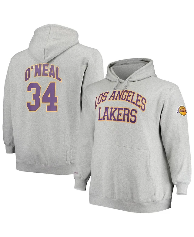 Men's Mitchell & Ness Shaquille O'Neal Heather Gray Los Angeles Lakers Big and Tall Name Number Pullover Hoodie