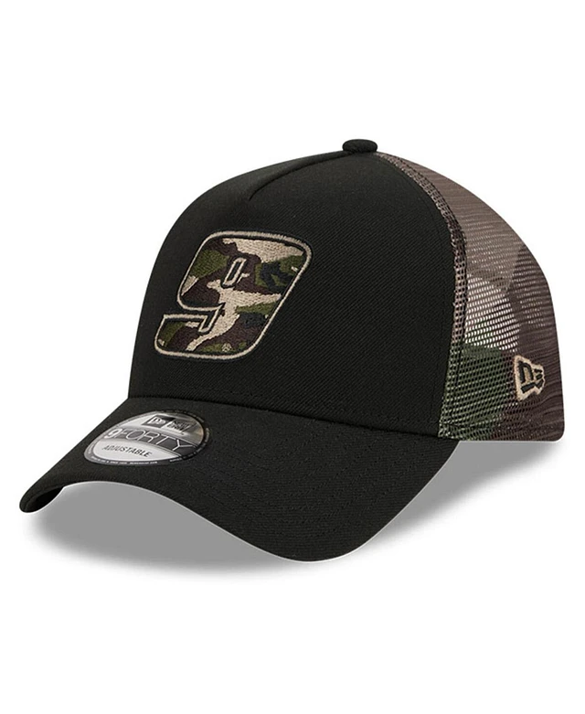 Men's New Era Black Chase Elliott Camo 9FORTY A-Frame Trucker Adjustable Hat