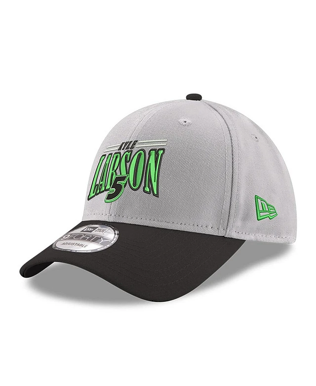 Men's New Era Gray, Black Kyle Larson 9FORTY Name and Number Adjustable Hat