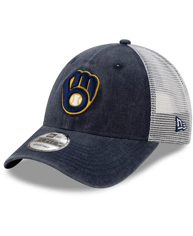 Men's New Era Navy Milwaukee Brewers Trucker 9FORTY Adjustable Snapback Hat