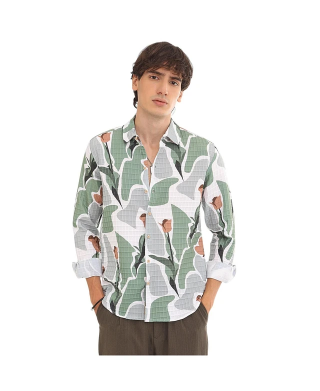 Men's Pistachio Green & Ash Grey Abstract Tulip Shirt