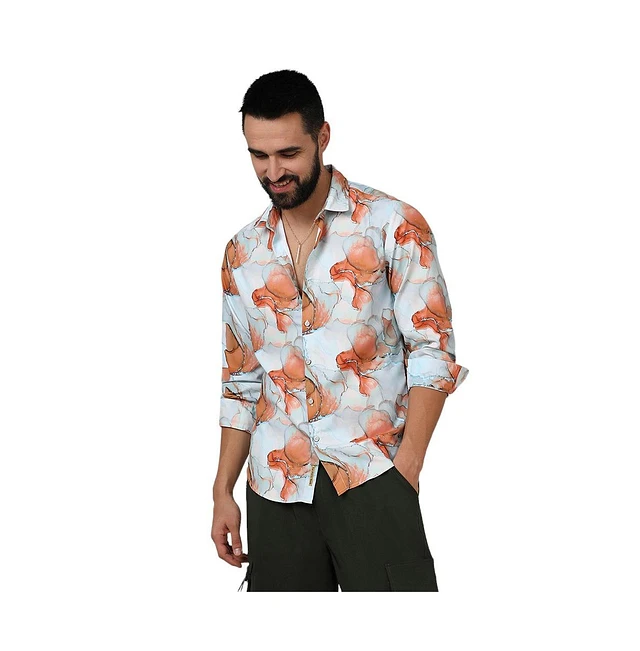 Men's Sky Blue & Ivory White Strokes-Textured Shirt