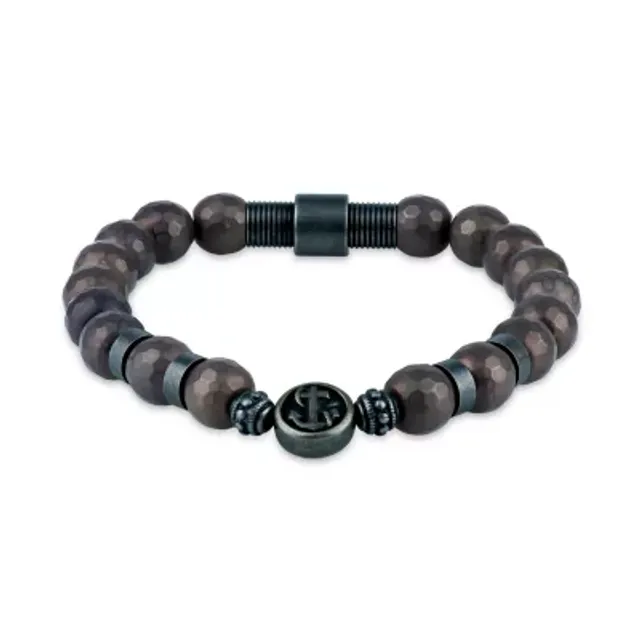 Mens Stainless Steel Gold-toned Beaded Bracelet