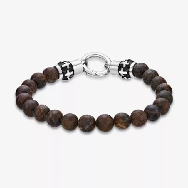 Mens Stainless Steel Gold-toned Beaded Bracelet