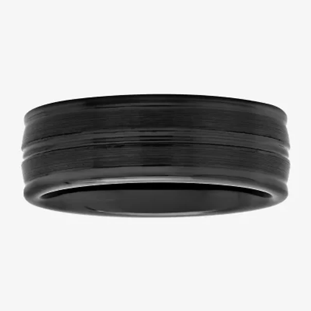 Mens Striped Black Ceramic 8mm Comfort Fit Wedding Band