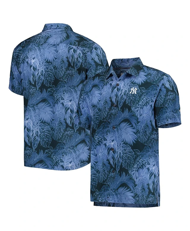 Men's Tommy Bahama Blue New York Yankees Bahama Coast Luminescent Fronds IslandZone Button-Up Camp Shirt