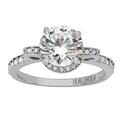 Womens Cubic Zirconia 10K White Gold Engagement Ring