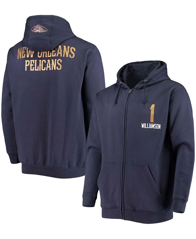 Men's Zion Williamson Navy New Orleans Pelicans Player Name and Number Full-Zip Hoodie Jacket