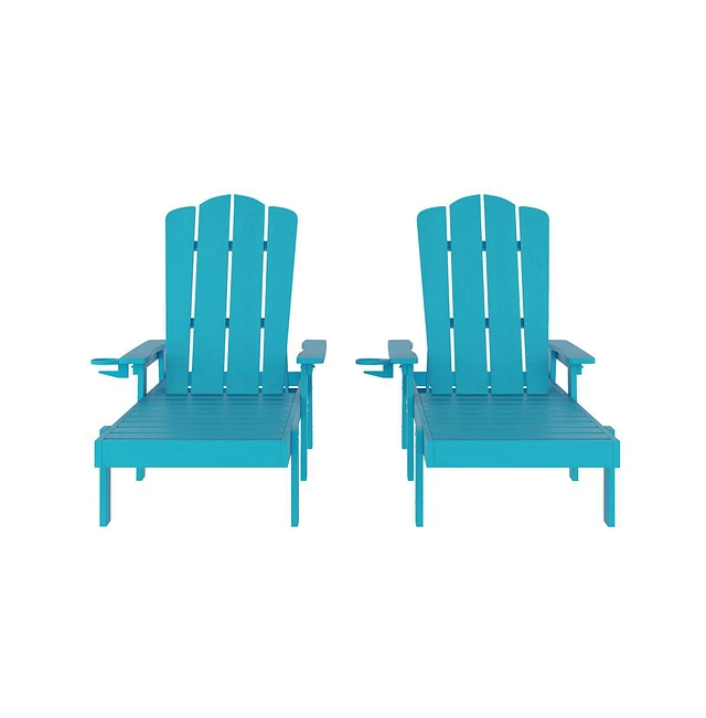 Merrick Lane Solvang Set Of 2 Indoor/Outdoor Adjustable Adirondack Loungers With Fold Out Cupholders- Recycled All-Weather Hdpe Lounge