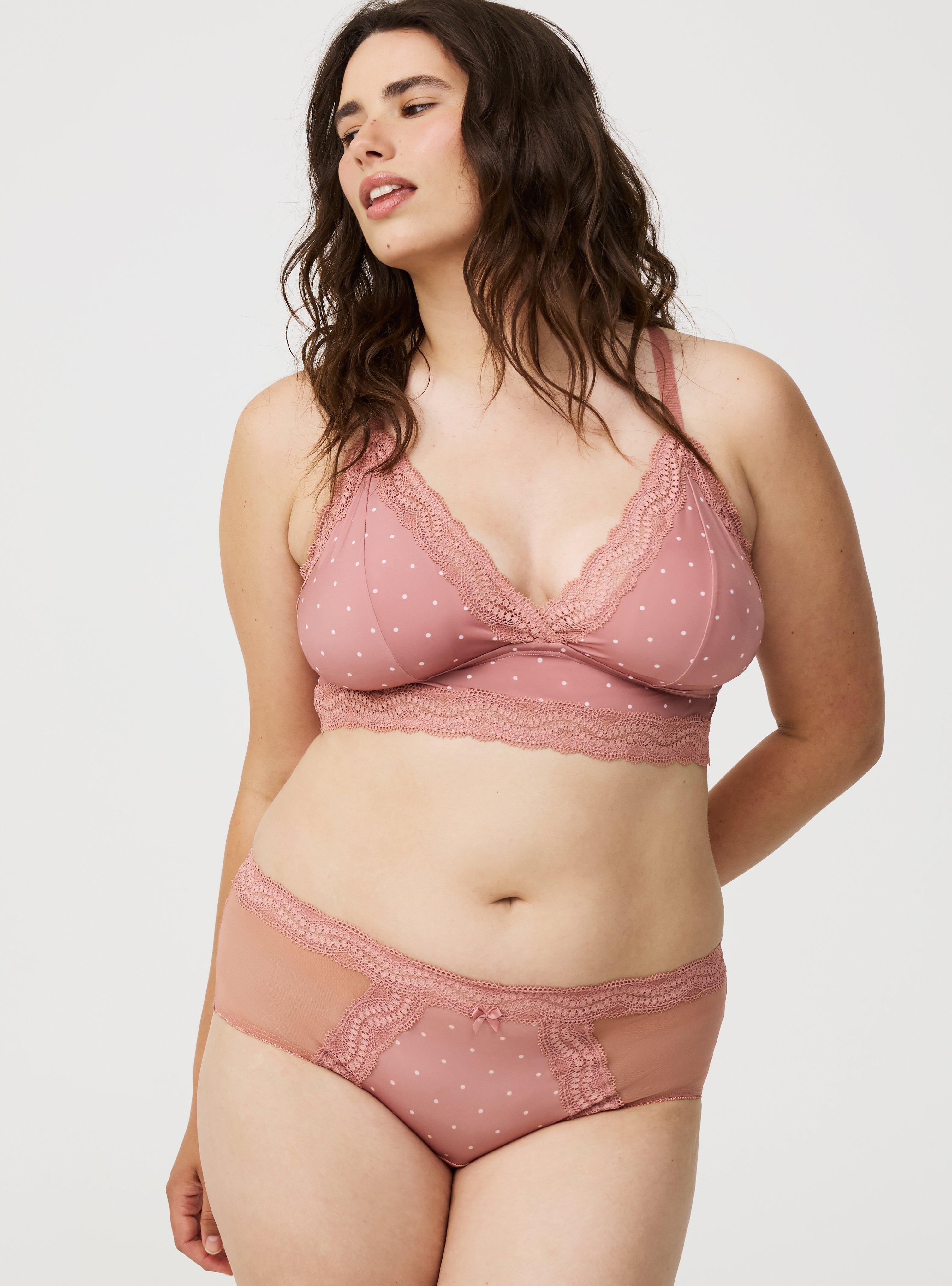FIT Mid rise. Minimal coverage. MATERIALS + CARE Microfiber & mesh knit fabric: 79% nylon, 21% spandex. Machine wash cold. Tumble dry low. Imported. DETAILS Elastic waistband. Ruched back. Lace trim.