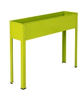 This elevated metal planter box offers spacious planting room, excellent drainage, and sturdy construction. Perfect for growing herbs, veggies, or flowers on patios, balconies, gardens, or greenhouses.