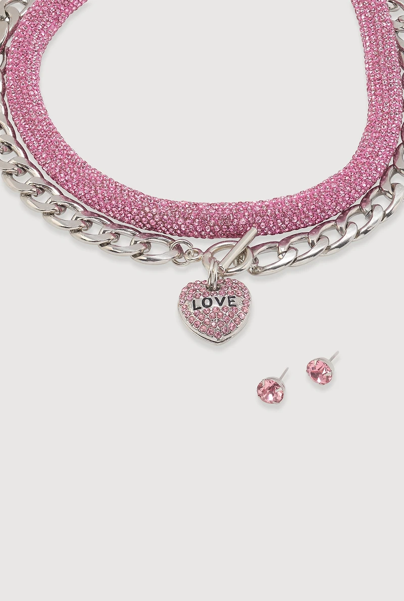 Metallic Love Necklace and Earrings Set