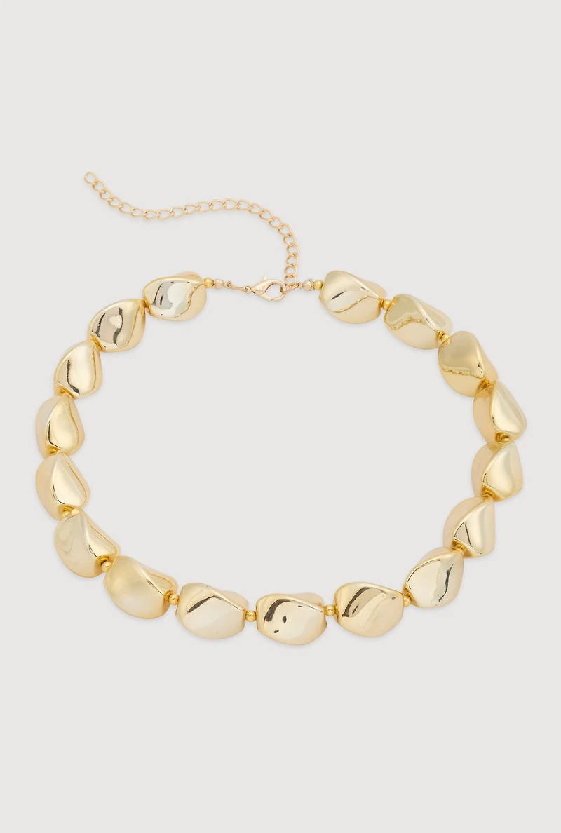 Metallic Sculpted Beaded Statement Necklace