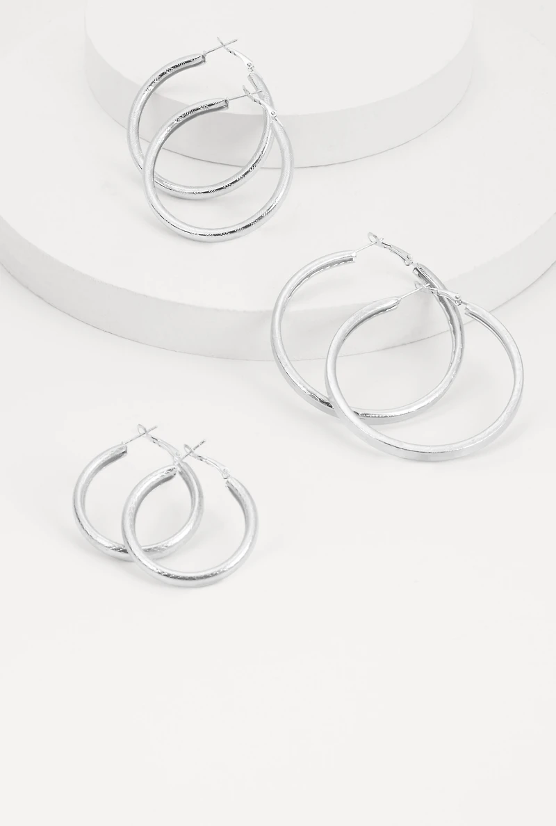 Metallic Textured Hoop Earring TrioMetallic Textured Hoop Earring TrioMetallic Textured Hoop Earring Trio