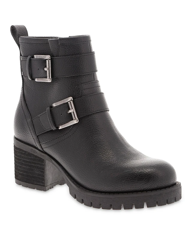 Mia Women's Annamaria Block Heel Lug Sole Biker Boots