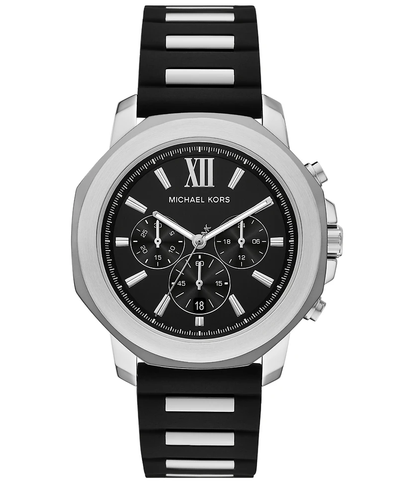 Michael Kors Men's Prescott Quartz Chronograph Black Silicone Watch, 44mm
