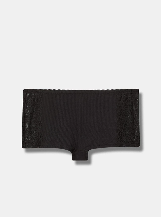 Cotton Rib Mid-Rise Lace Trim Boyshort Panty