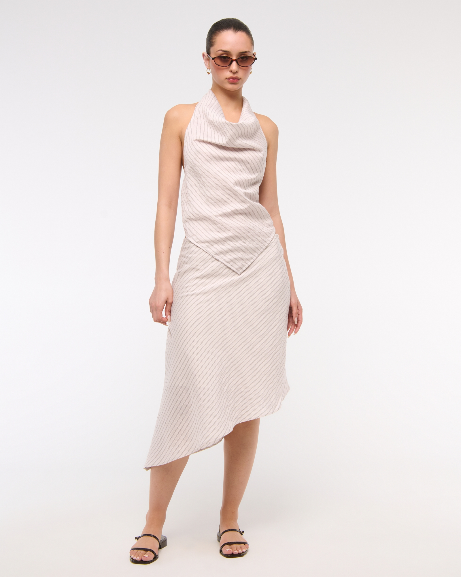 Our new mid rise midi skirt in our soft woven fabric, featuring a flowy silhouette, on-trend asymmetrical hem and side zipper closure for a secure fit.