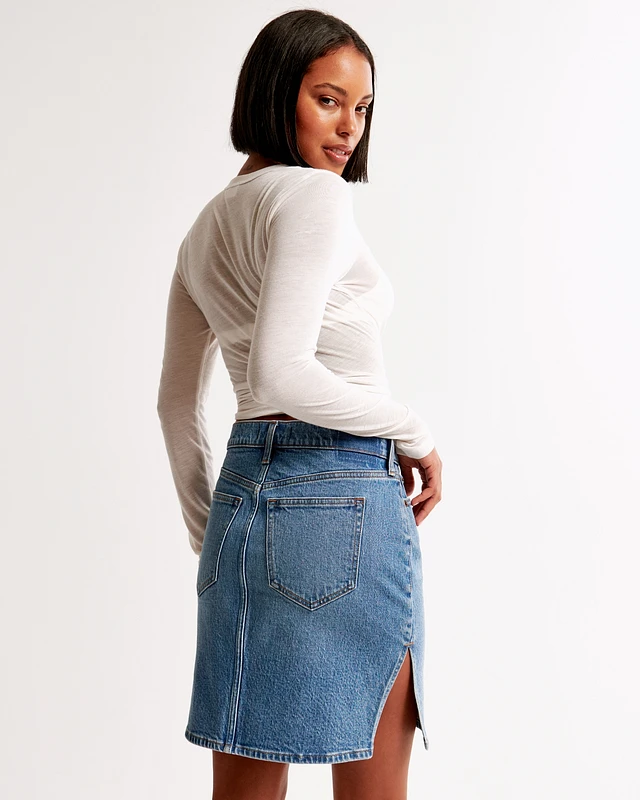 Mid Rise Drop-Waist Ruffle Denim Mini Skirt