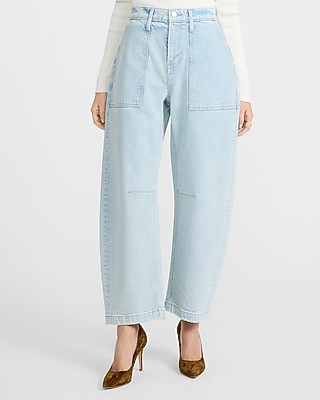 Mid Rise Light Wash Patch Pocket Barrel Jeans