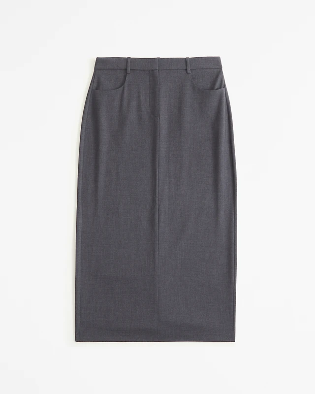 Mid Rise Tailored Back-Slit Maxi Skirt