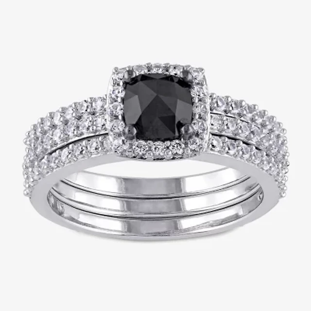 Womens 1 1/2 CT.T.W. Color Enhanced Black & White Diamond Sterling Silver Bridal Set
