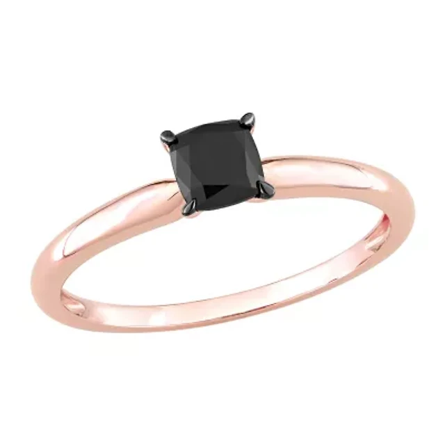 Midnight Black Womens 1/ CT. Natural Diamond 14K Rose Gold Cushion Solitaire Engagement Ring