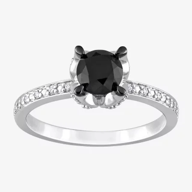 Midnight Black Womens 1 CT. T.W. Natural Diamond 14K Gold Round Engagement Ring