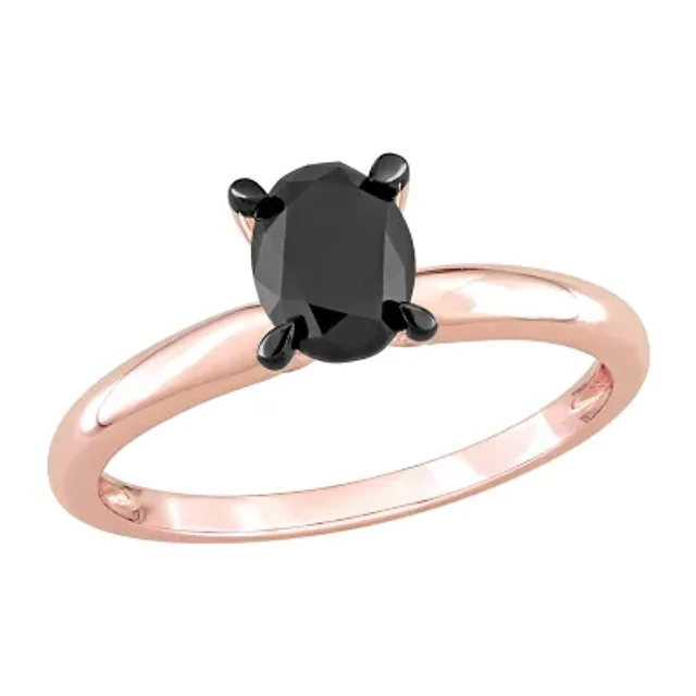Midnight Black Womens 1 CT. T.W. Natural Diamond 14K Rose Gold Oval Engagement Ring