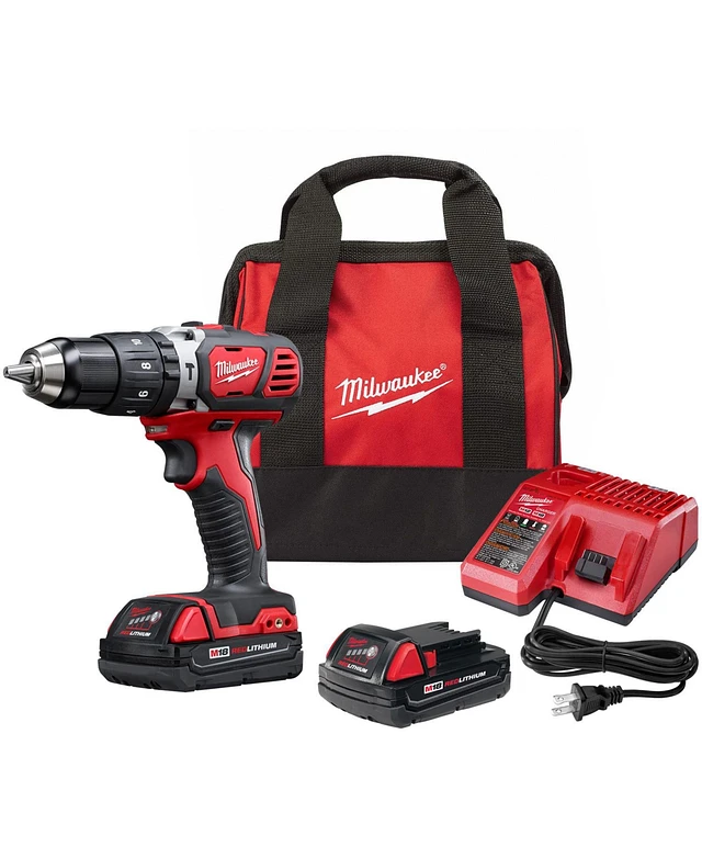Milwaukee M18 Lithium-Ion Cordless 1/2 in. Hammer Drill Driver Kit with Two 1.5Ah Batteries, Charger and Contractor Bag