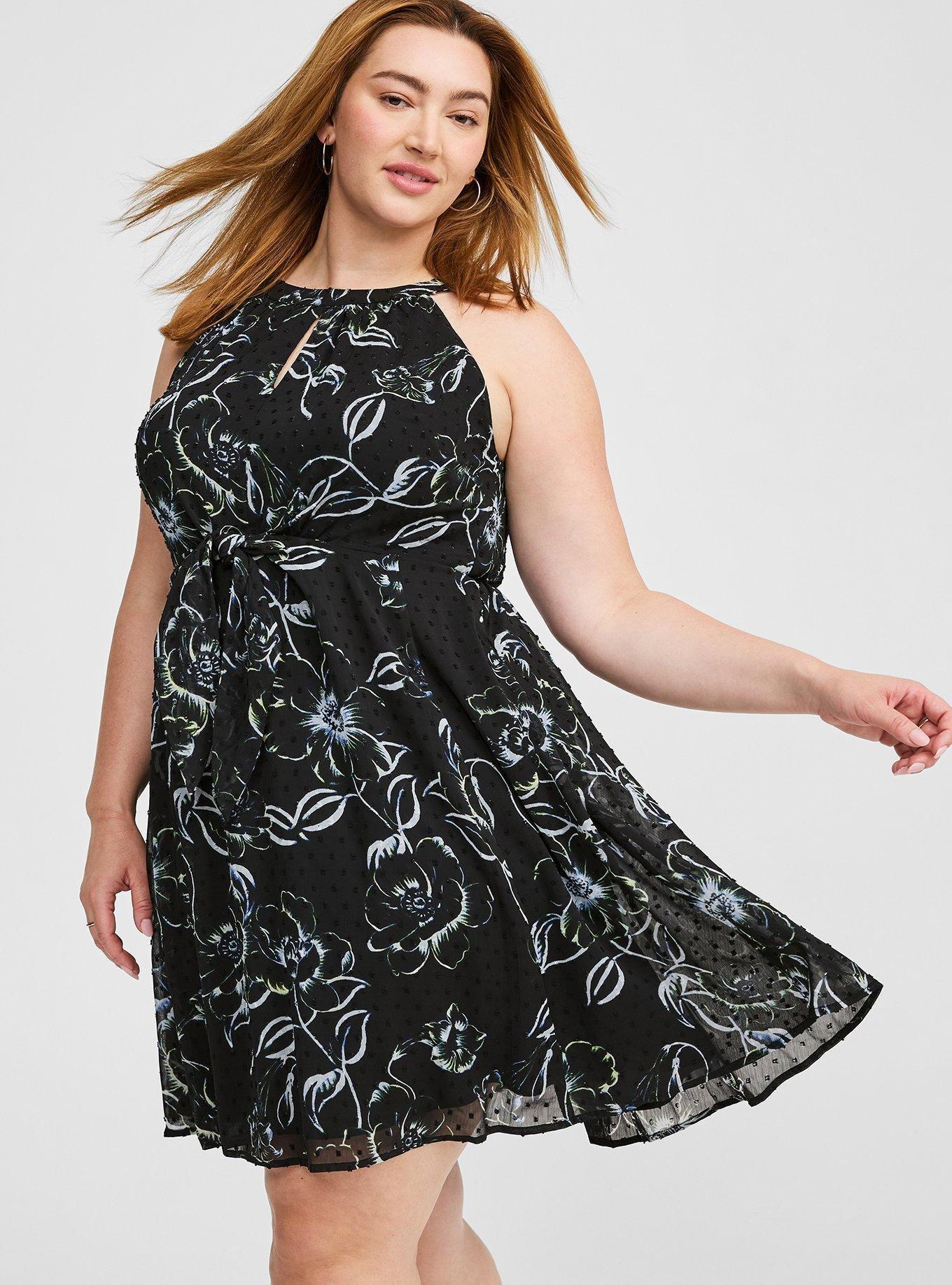 Mini Clip Dot Chiffon Halter Keyhole Dress in San Juan, PR