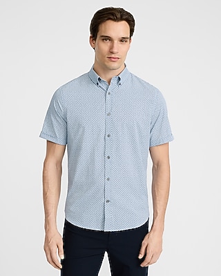 Lightweight and breathable, this short sleeve moisture-wicking shirt has your back during long warmer days. This button-down features a versatile mini geo print, a button-down point collar, and wrinkle-resistant, stretch fabric to keep you cool and confident through any situation.