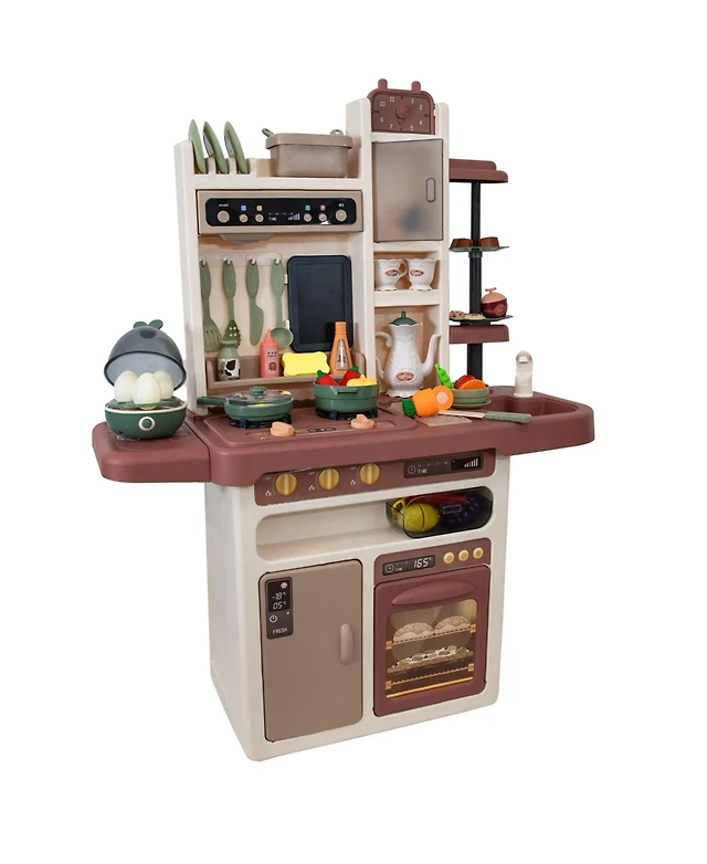 Kids Kitchen Playset with Realistic Sounds and Lights-Brown & White