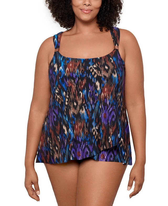 Miraclesuit Plus Razzle Dazzle Asymmetrical-Drape Tankini Top