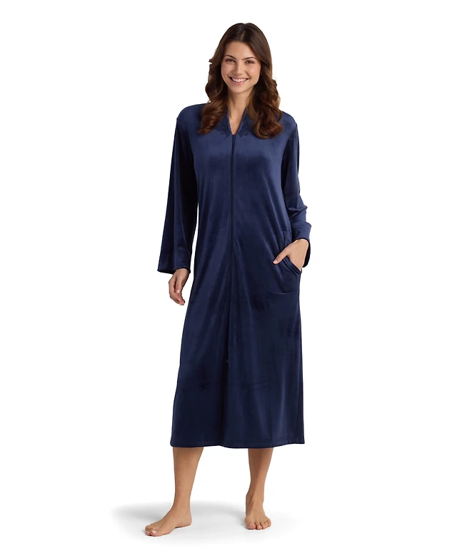 Miss Elaine Women's Long-Sleeve Solid Long Zipper Robe