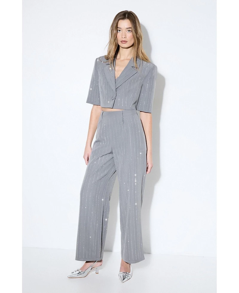 Make a statement at your next night out with these eye-catching embellished straight leg pants from Misspap. The dazzling embellishments catch the light as you move, ensuring all eyes are on you. Style with a simple bodysuit or crop top to let the pants take center stage.