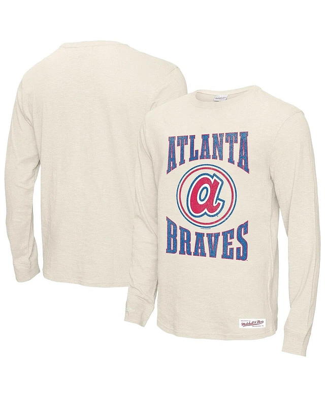 Mitchell & Ness Men's Cream Atlanta Braves Arched Logo Slub Long Sleeve T-Shirt
